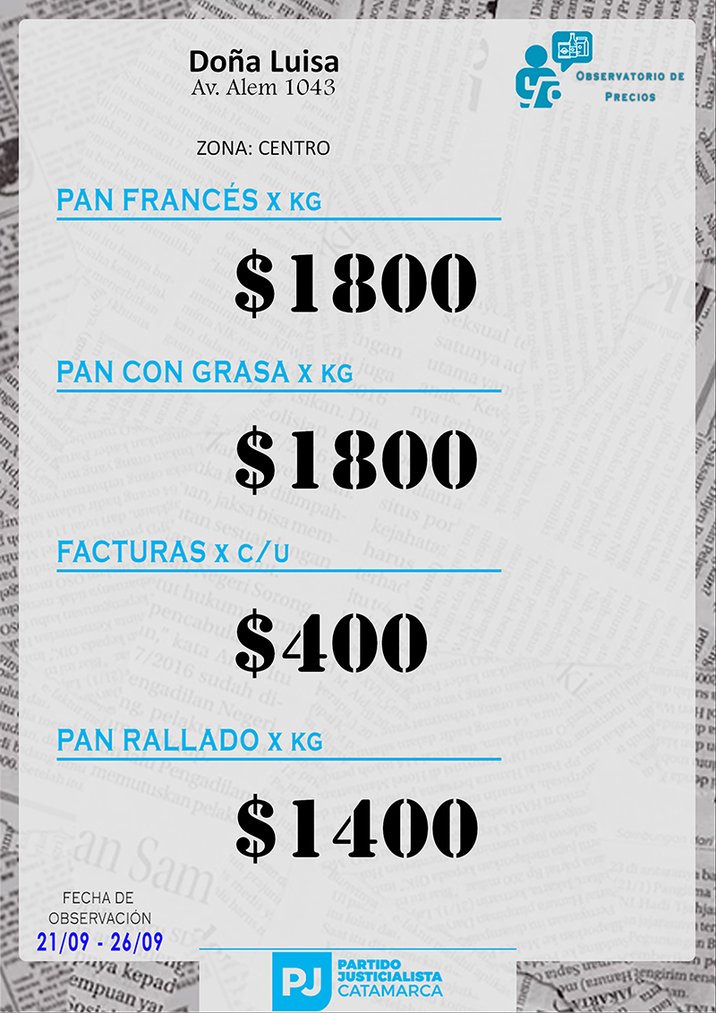 Zona CENTRO Carnicerías Anterior Siguiente Mercaderías Anterior Siguiente Panaderías Anterior Siguiente Pollerías Anterior Siguiente Verdulerías Anterior Siguiente