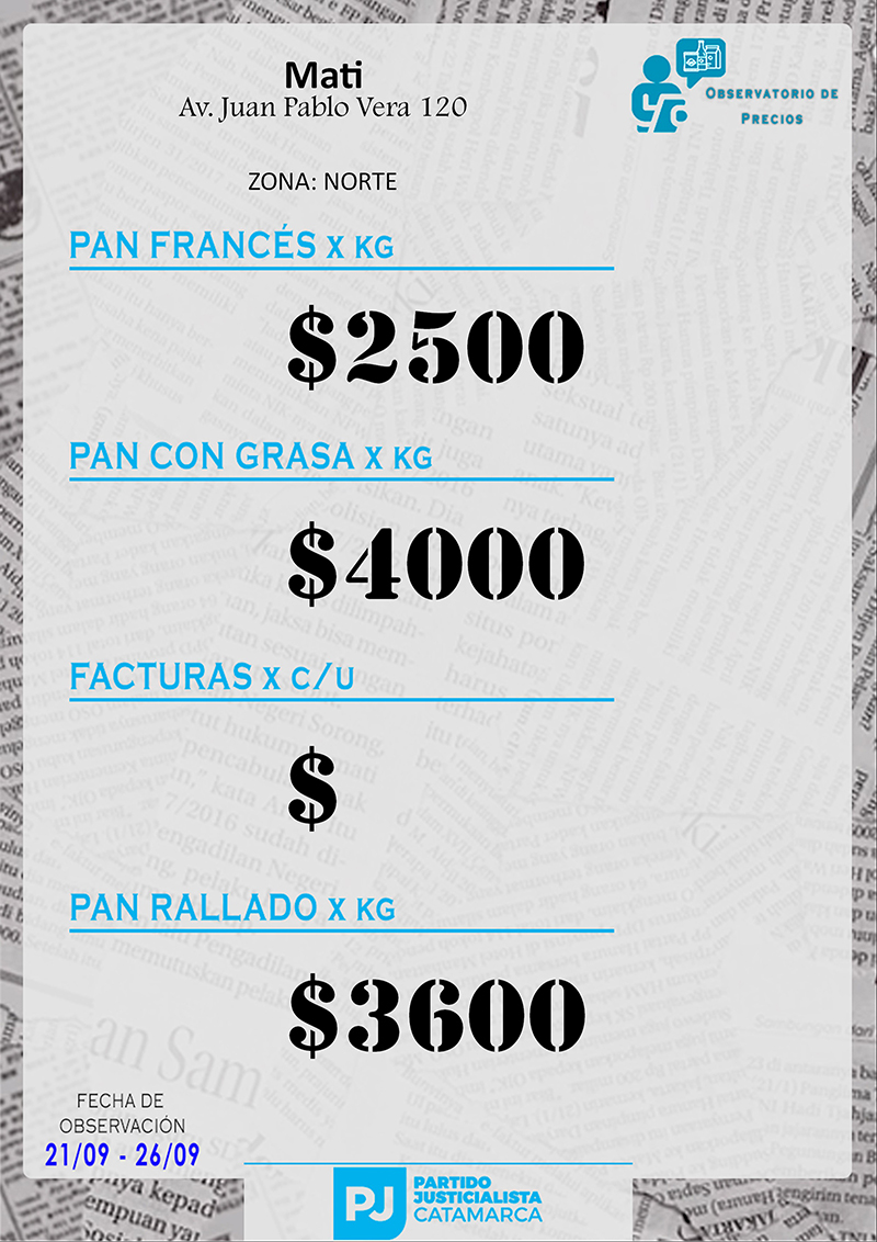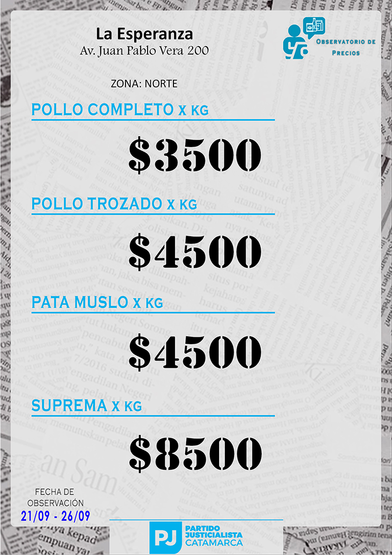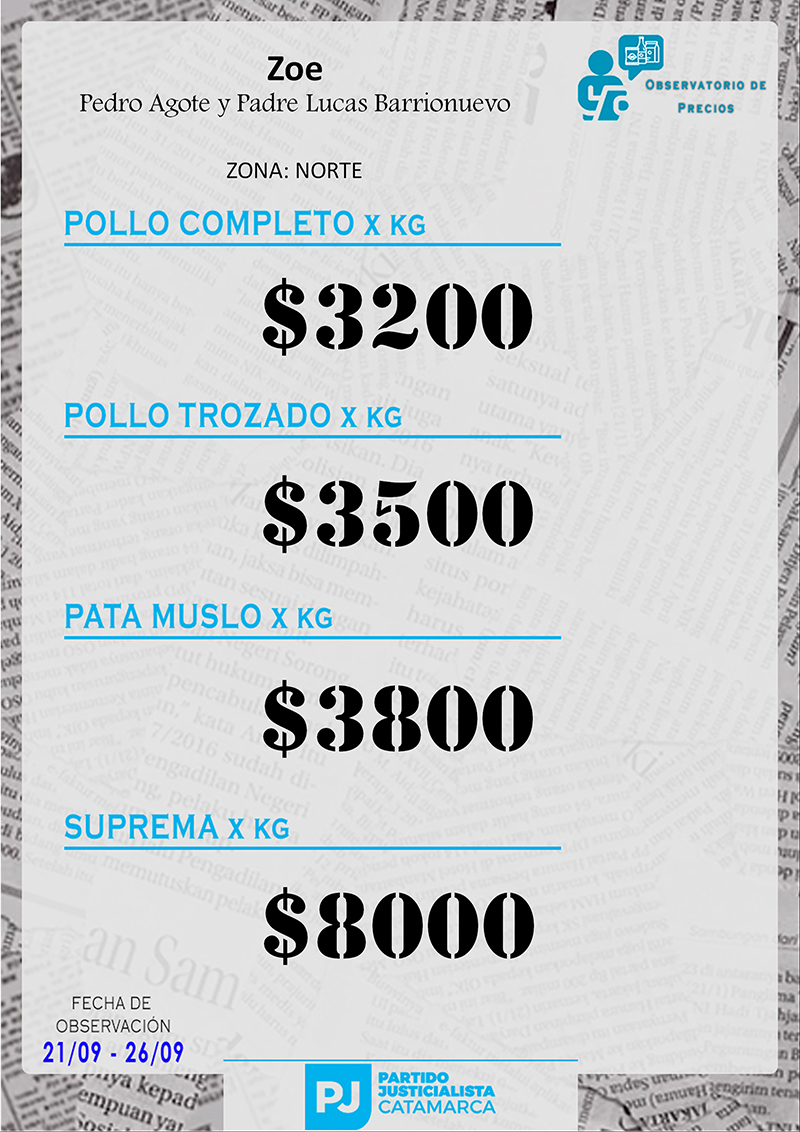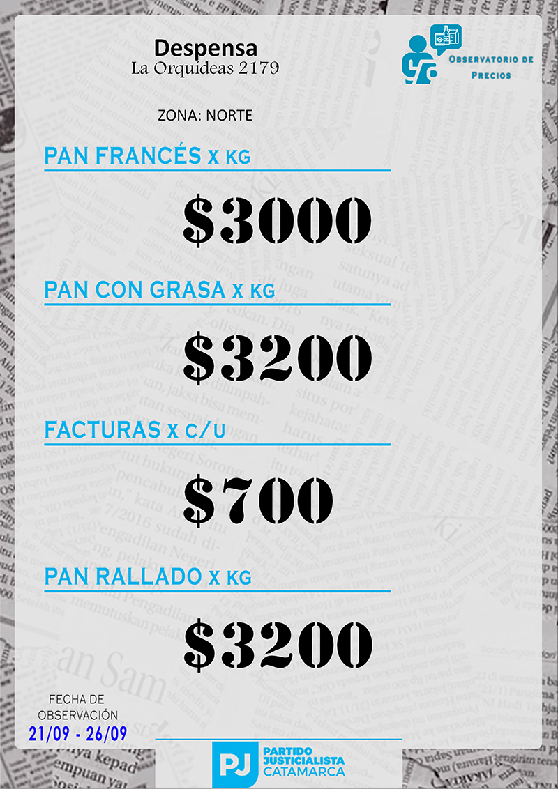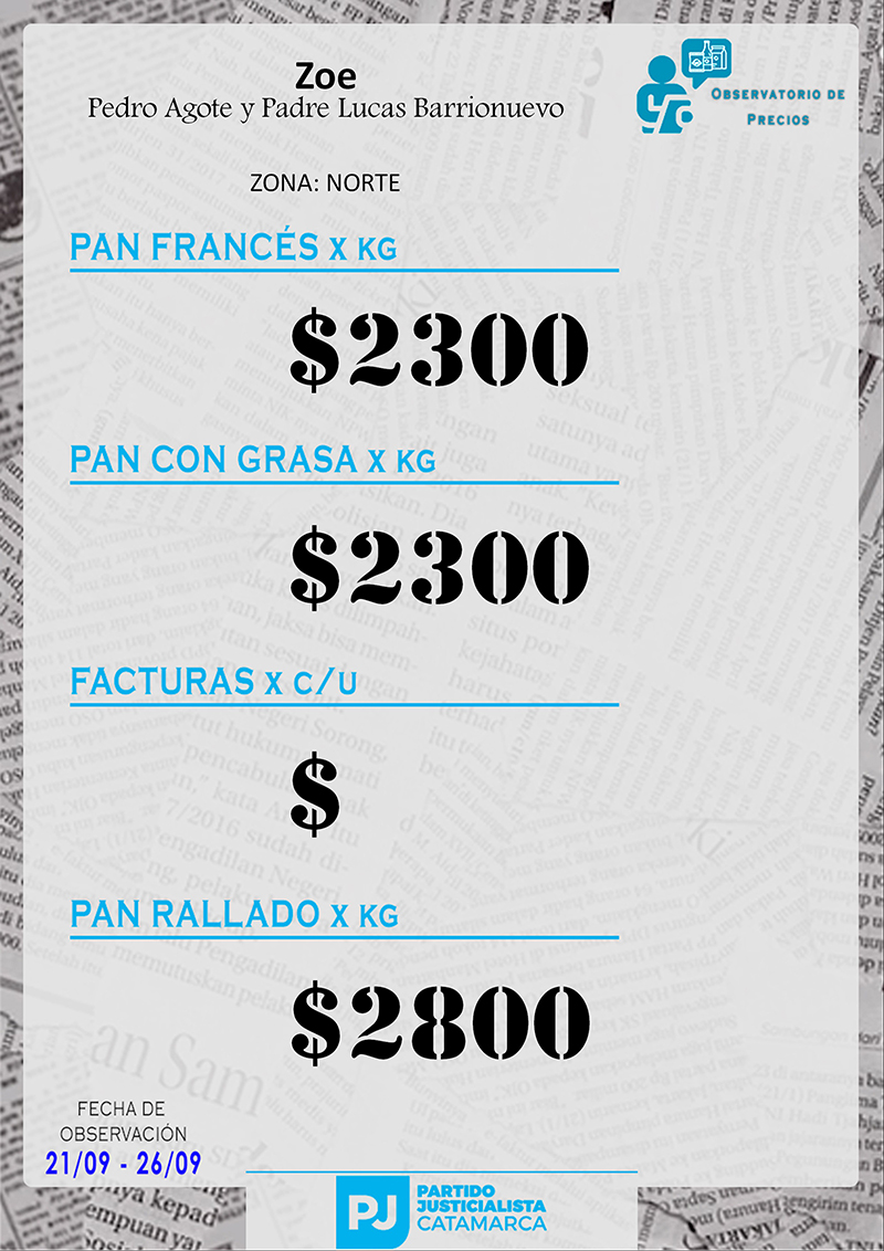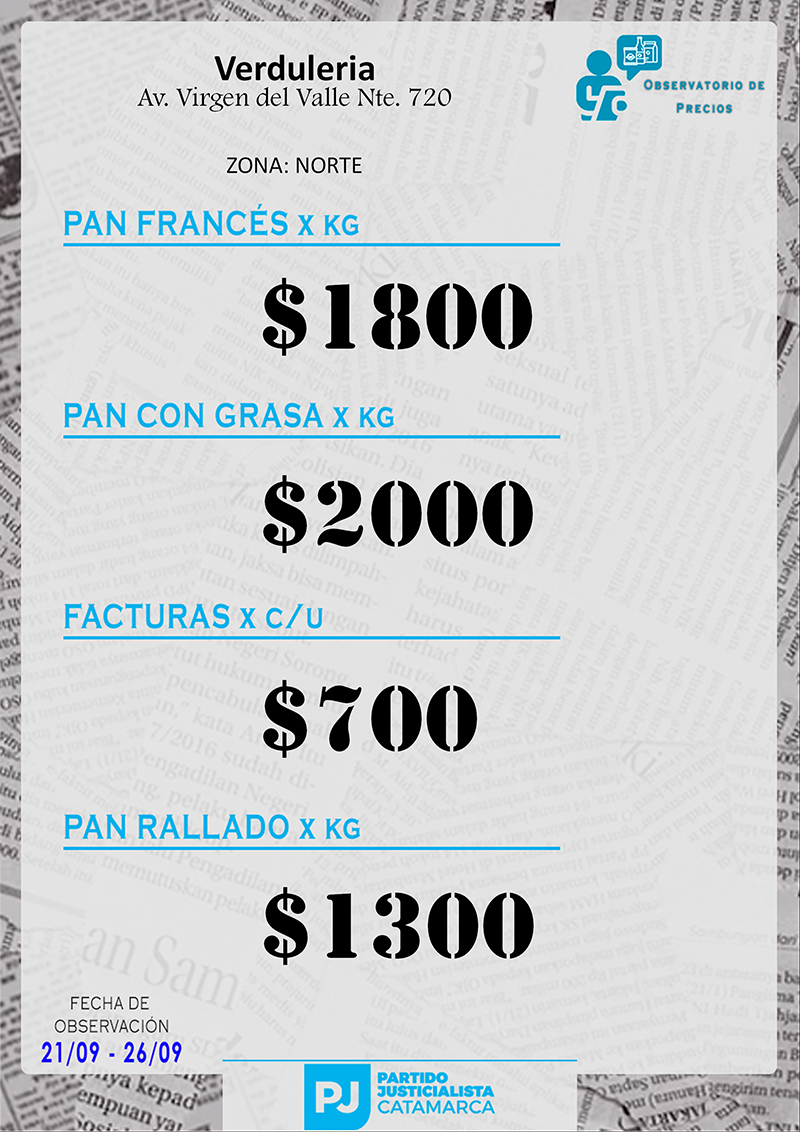 Zona NORTE Carnicerías Anterior Siguiente Mercaderías Anterior Siguiente Panaderías Anterior Siguiente Pollerías Anterior Siguiente Verdulerías Anterior Siguiente