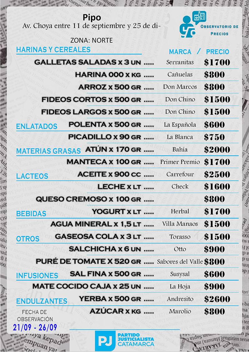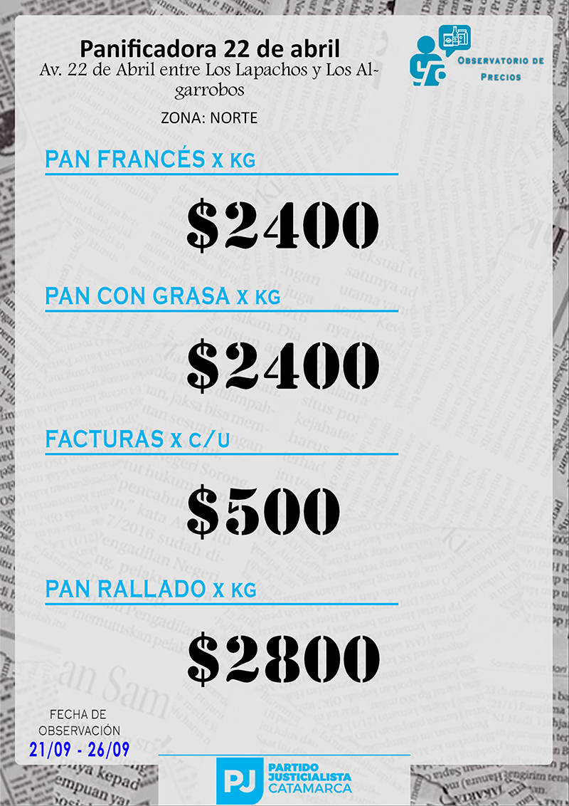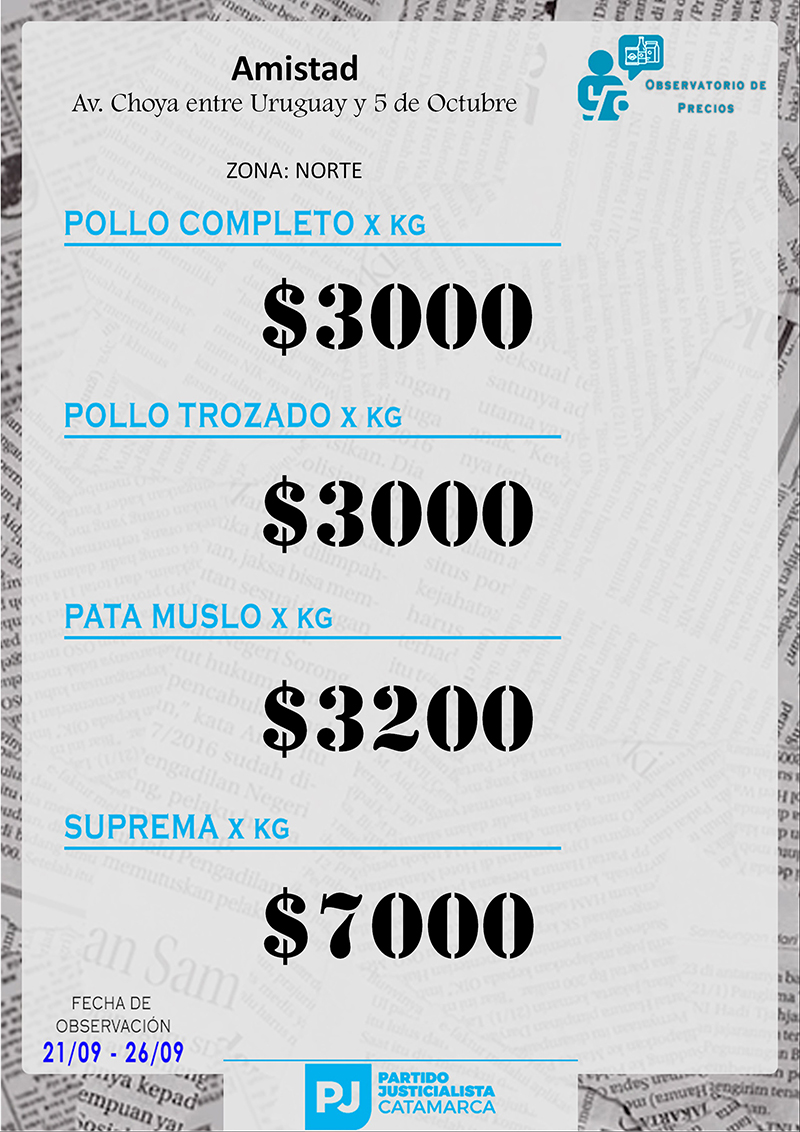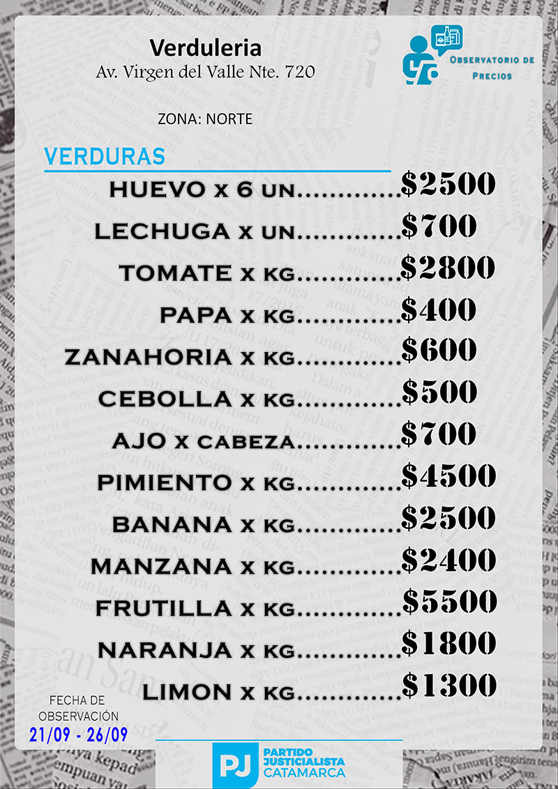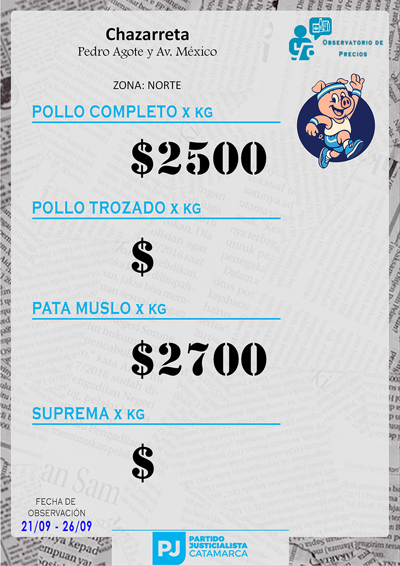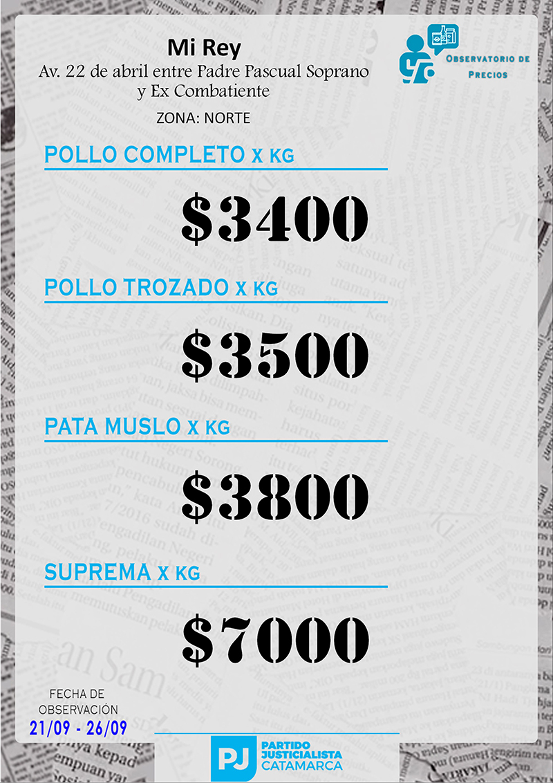 Zona NORTE Carnicerías Anterior Siguiente Mercaderías Anterior Siguiente Panaderías Anterior Siguiente Pollerías Anterior Siguiente Verdulerías Anterior Siguiente