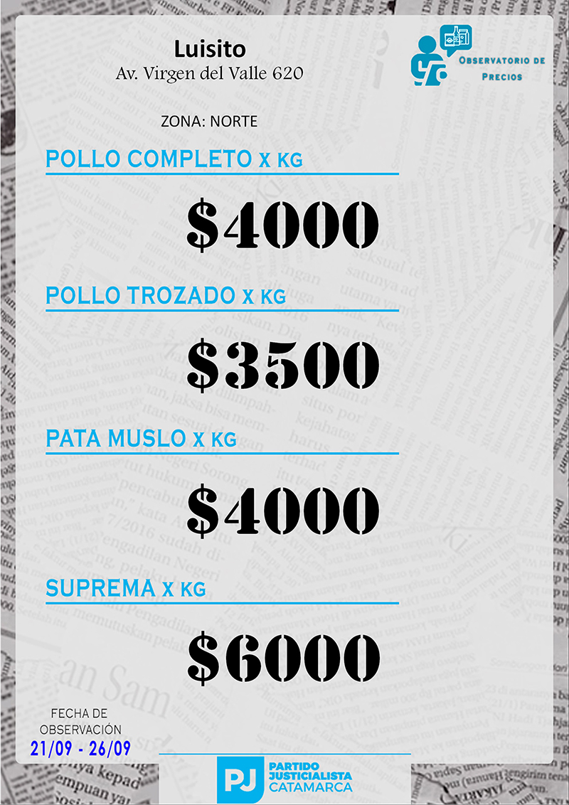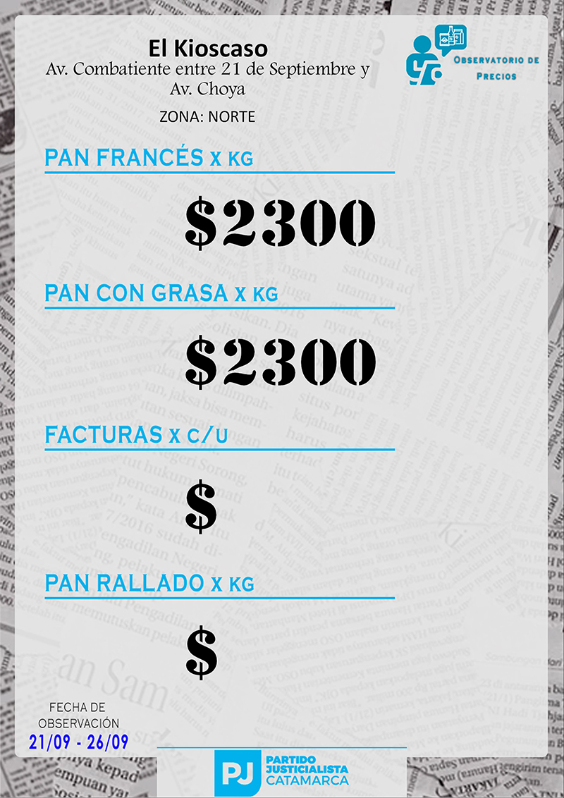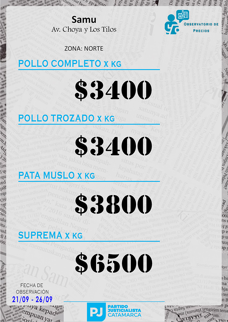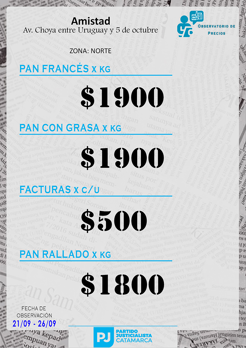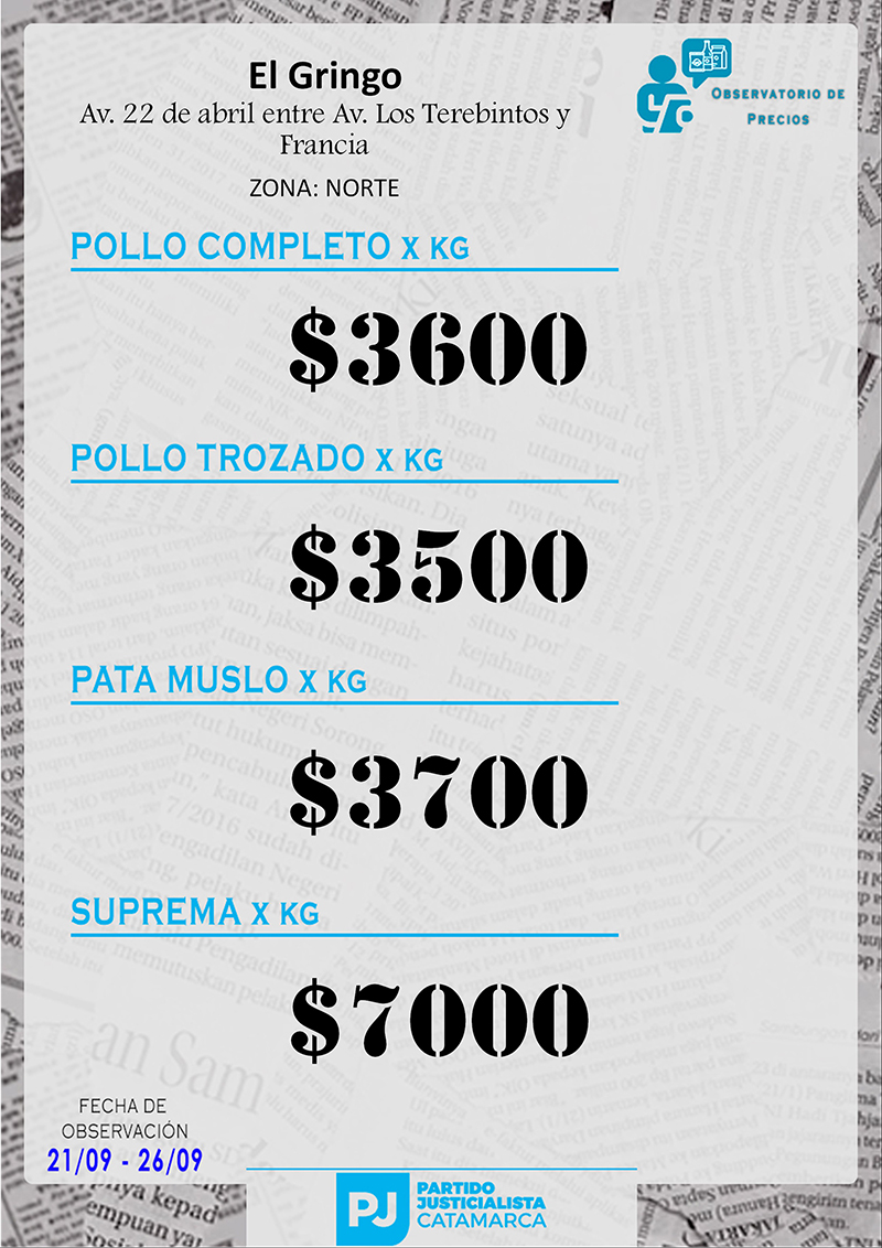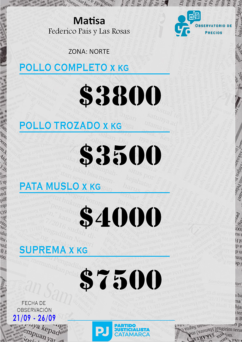Zona NORTE Carnicerías Anterior Siguiente Mercaderías Anterior Siguiente Panaderías Anterior Siguiente Pollerías Anterior Siguiente Verdulerías Anterior Siguiente