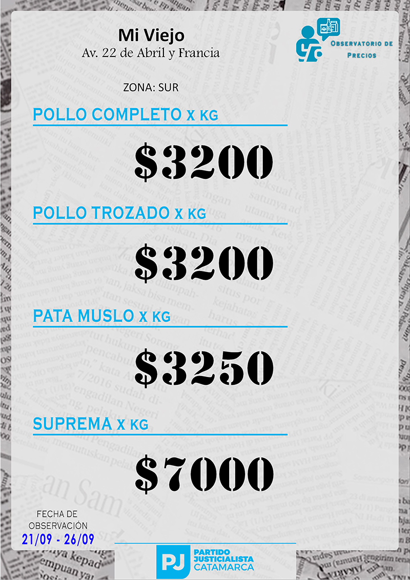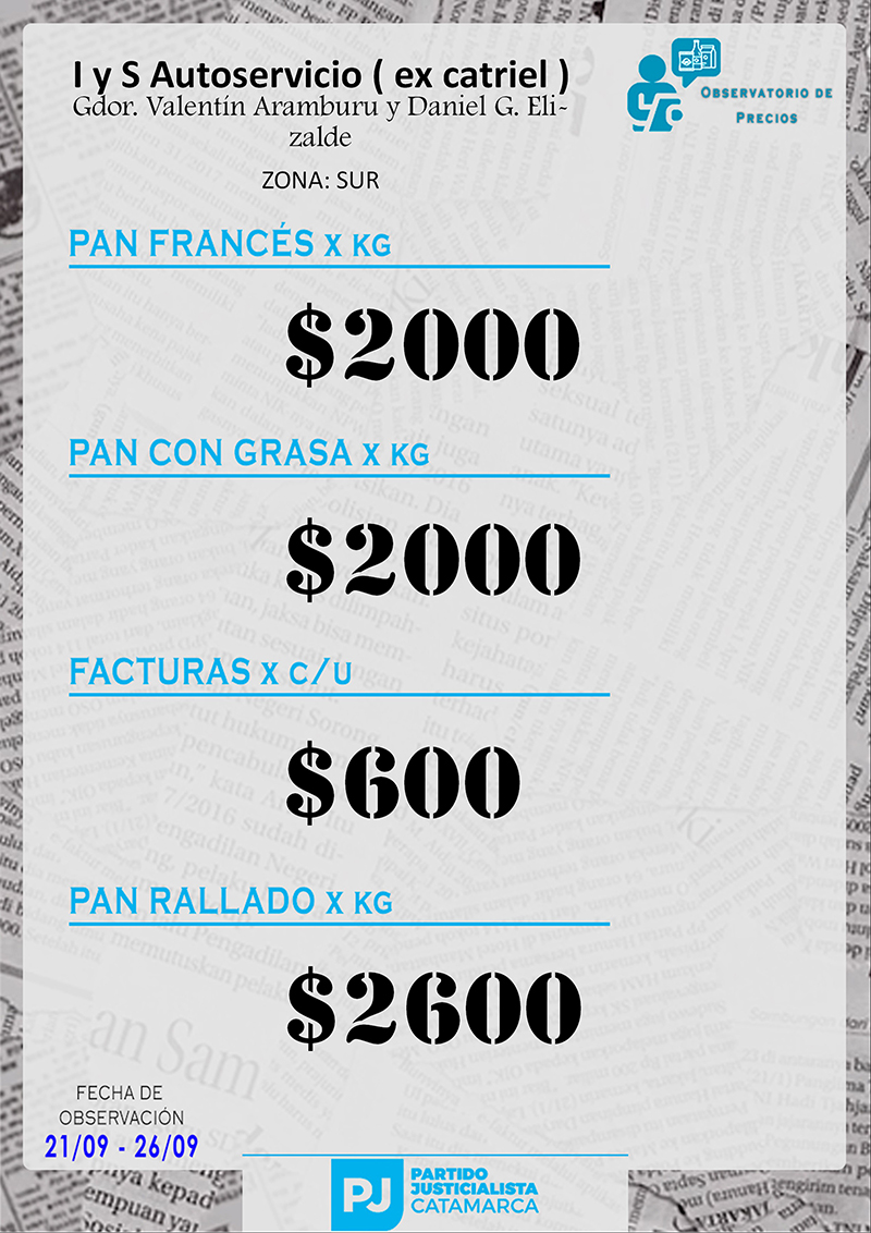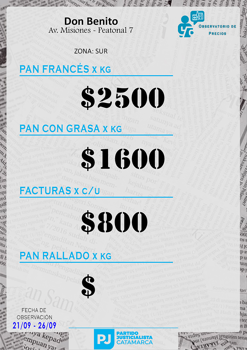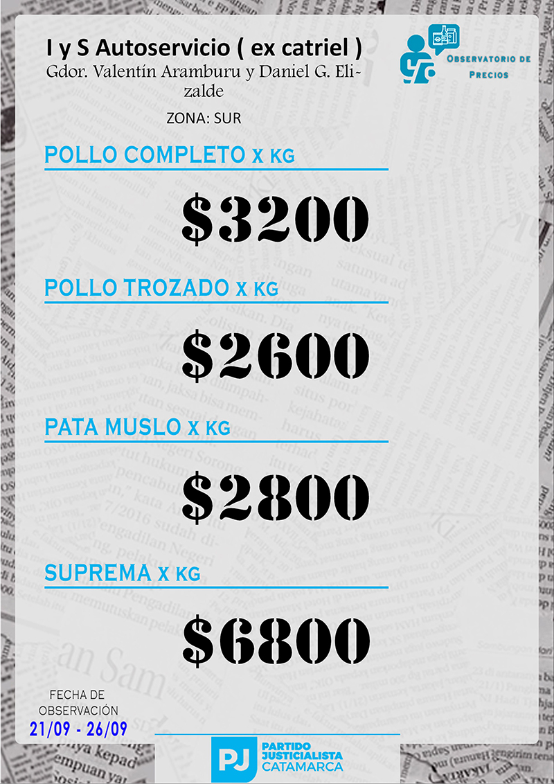 Zona SUR Carnicerías Anterior Siguiente Mercaderías Anterior Siguiente Panaderías Anterior Siguiente Pollerías Anterior Siguiente Verdulerías Anterior Siguiente
