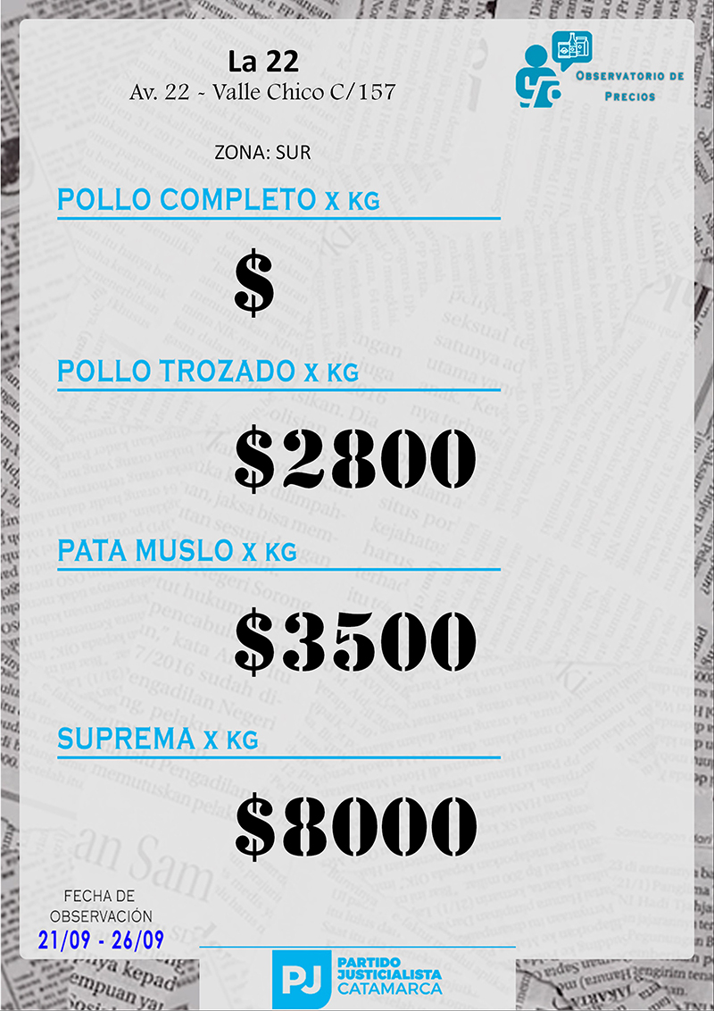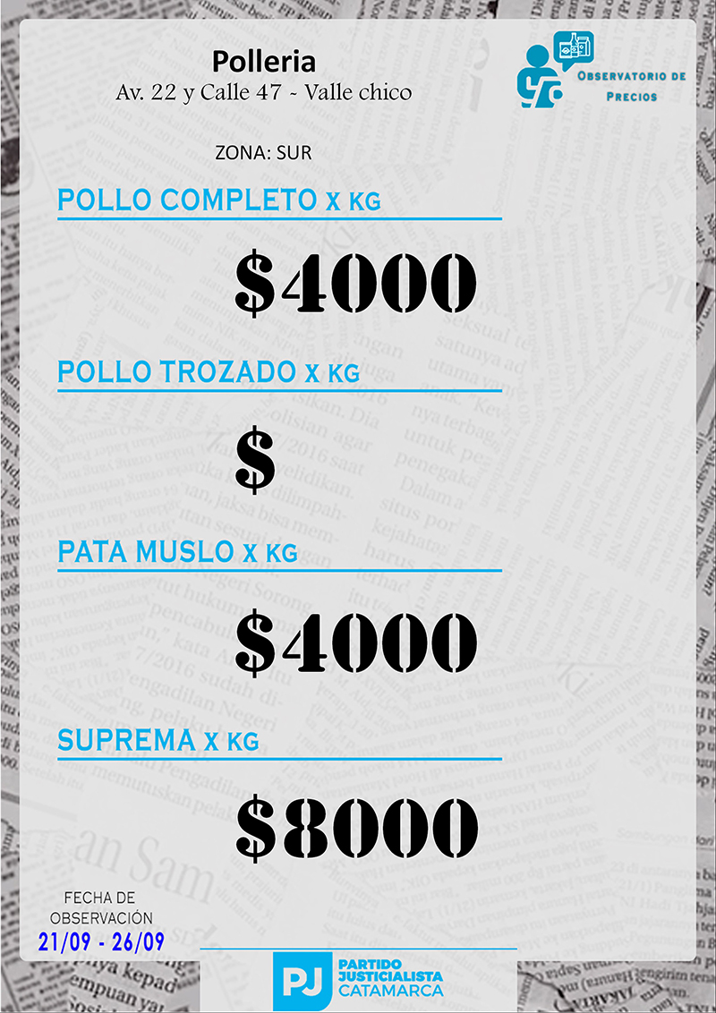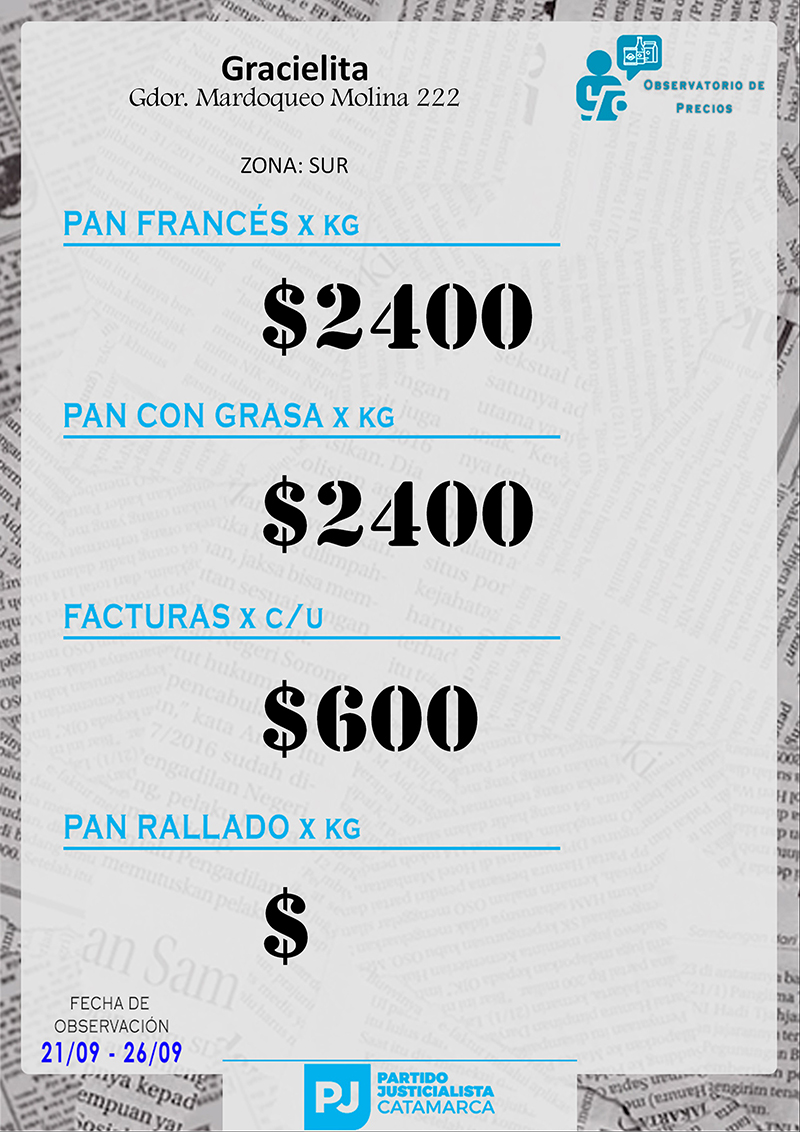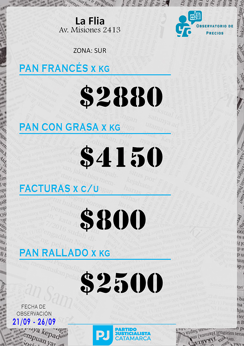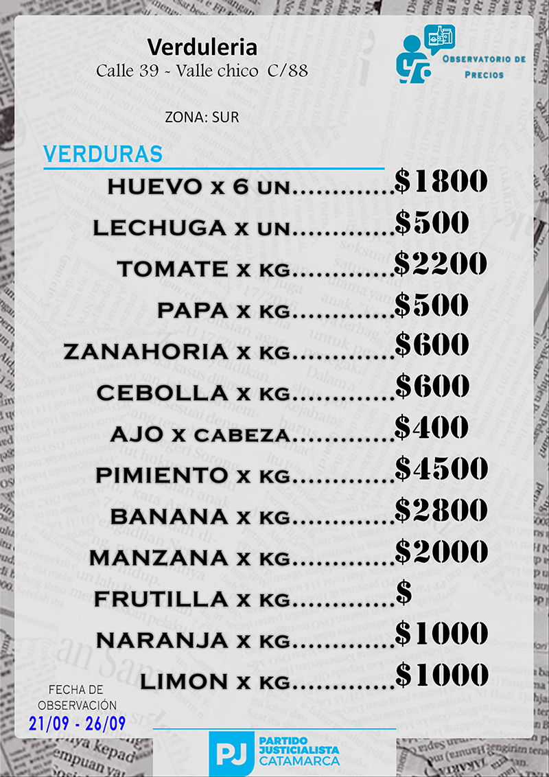 Zona SUR Carnicerías Anterior Siguiente Mercaderías Anterior Siguiente Panaderías Anterior Siguiente Pollerías Anterior Siguiente Verdulerías Anterior Siguiente
